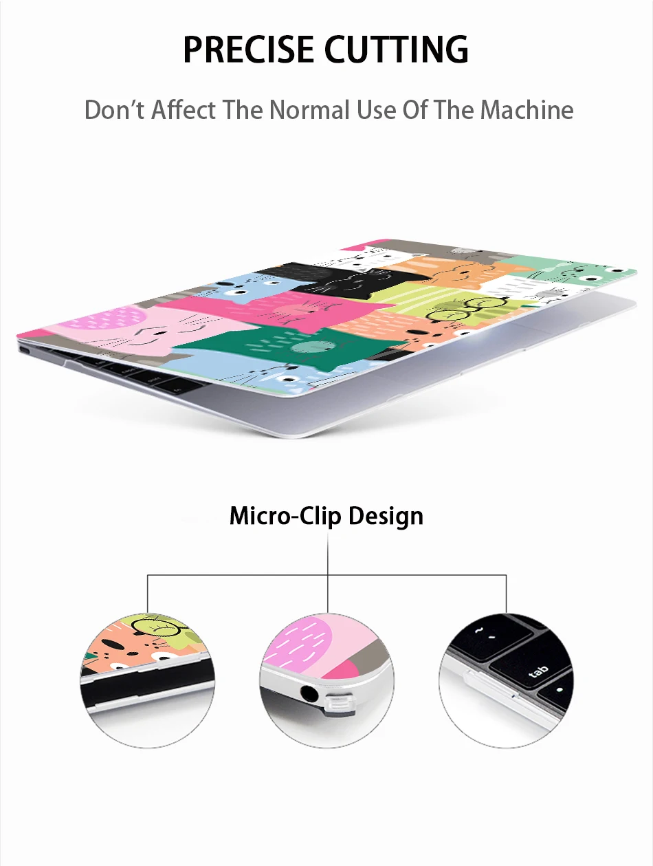 1.Чехол предназначен только для серии Macbook Air и Pro.2.Материал:Экологически чистый пластик, защищает ноутбук от кофе, пятен и царапин.3.Чехол без выреза, логотип просвечивает через чехол.4.Высококачественная технология 3D рельефной печати(Не наклейка), И покрытие не легко отпадает, выцветает.5.1:1 изготовленный на заказ, полный доступ ко всем портам и функциям, не снимая чехол.