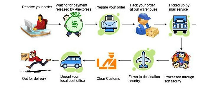 7. Из-за наличия на складе и разницы во времени, мы выберем доставку Вашего товара с нашего первого доступного склада для быстрой доставки.