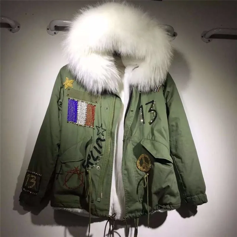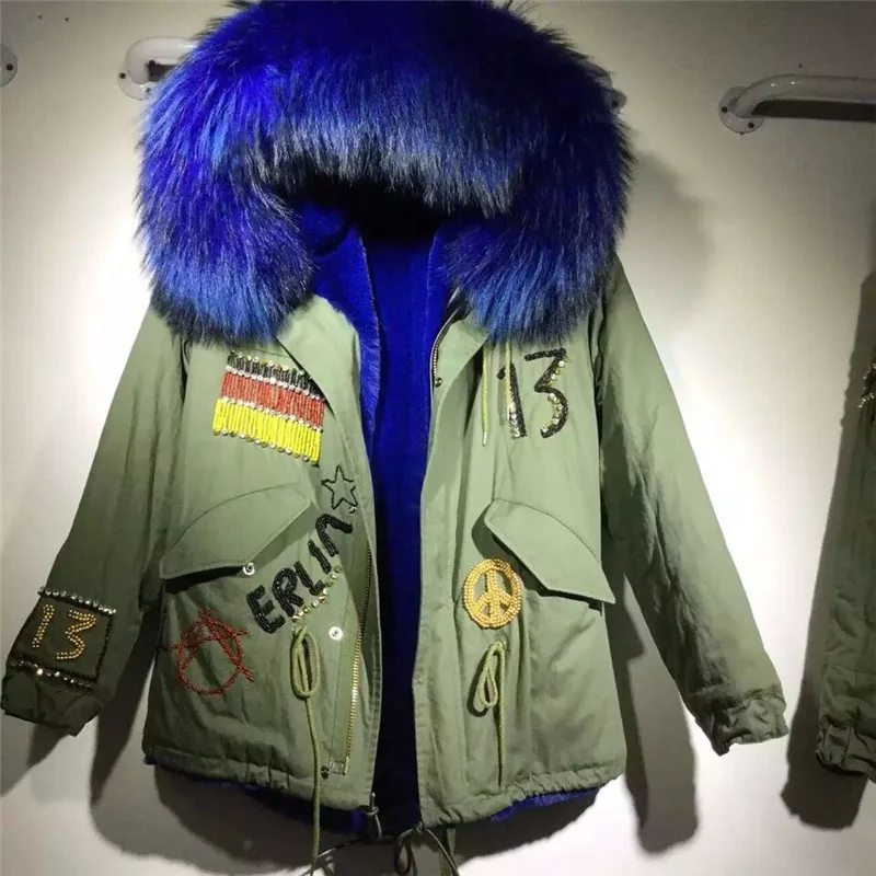 Продукт | Бесплатная доставка заводская цена погоны/Бисер 6 цветов меховая парка куртка Mr Mrs енот большой меховой воротник для женщин/мужчин пальто |