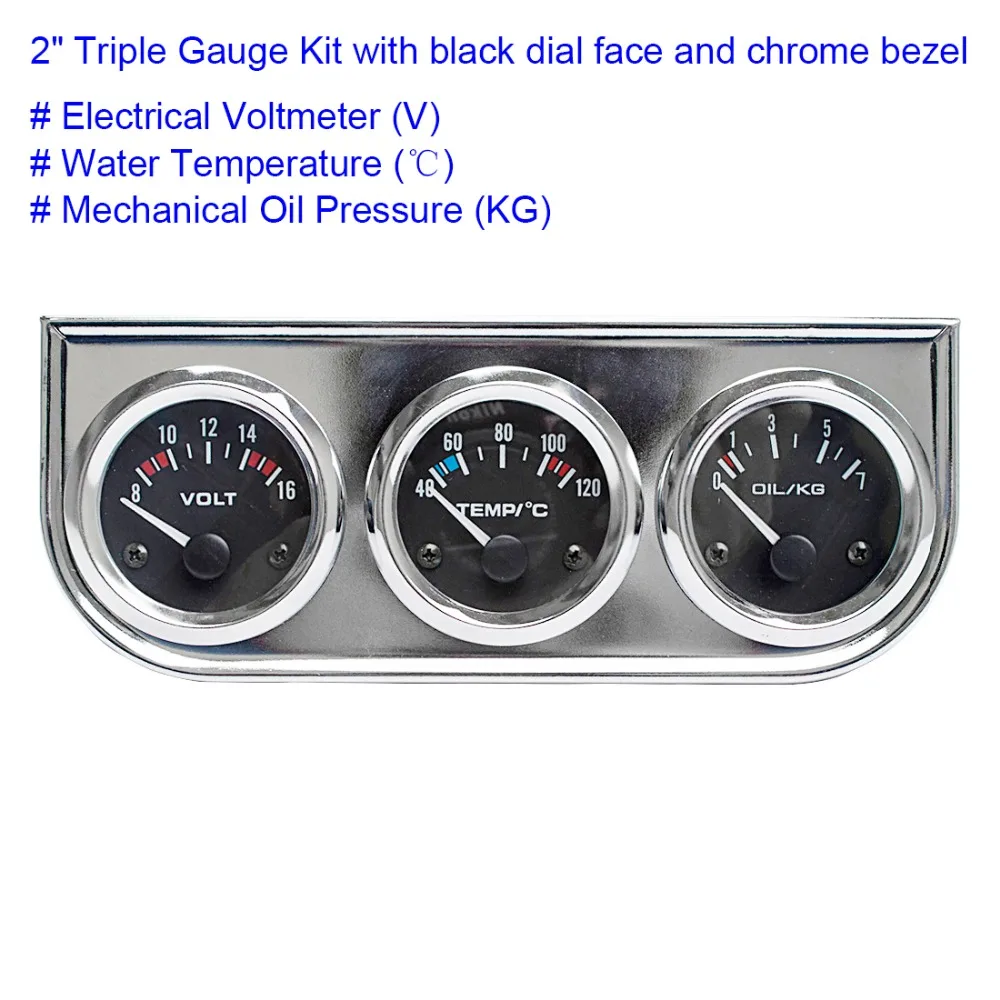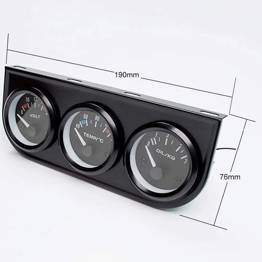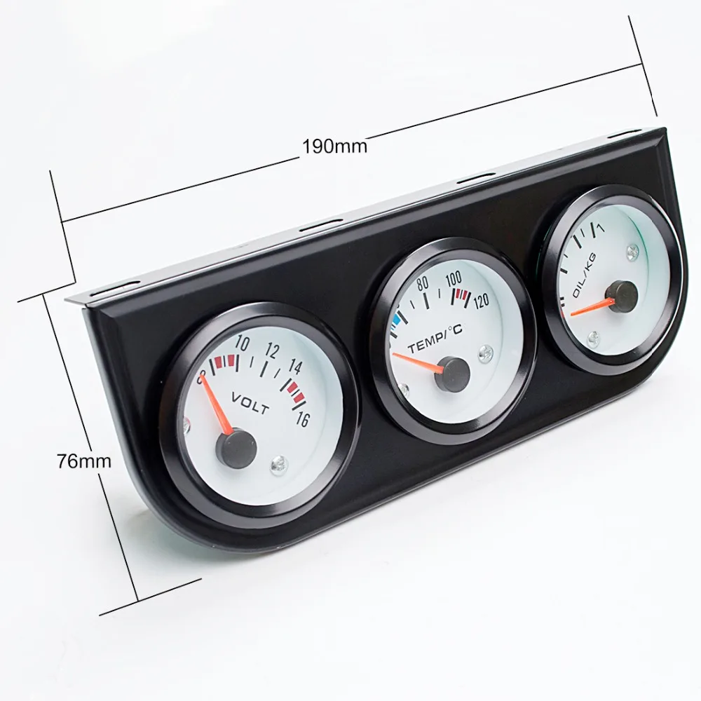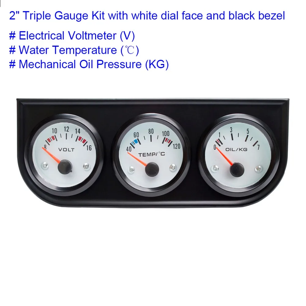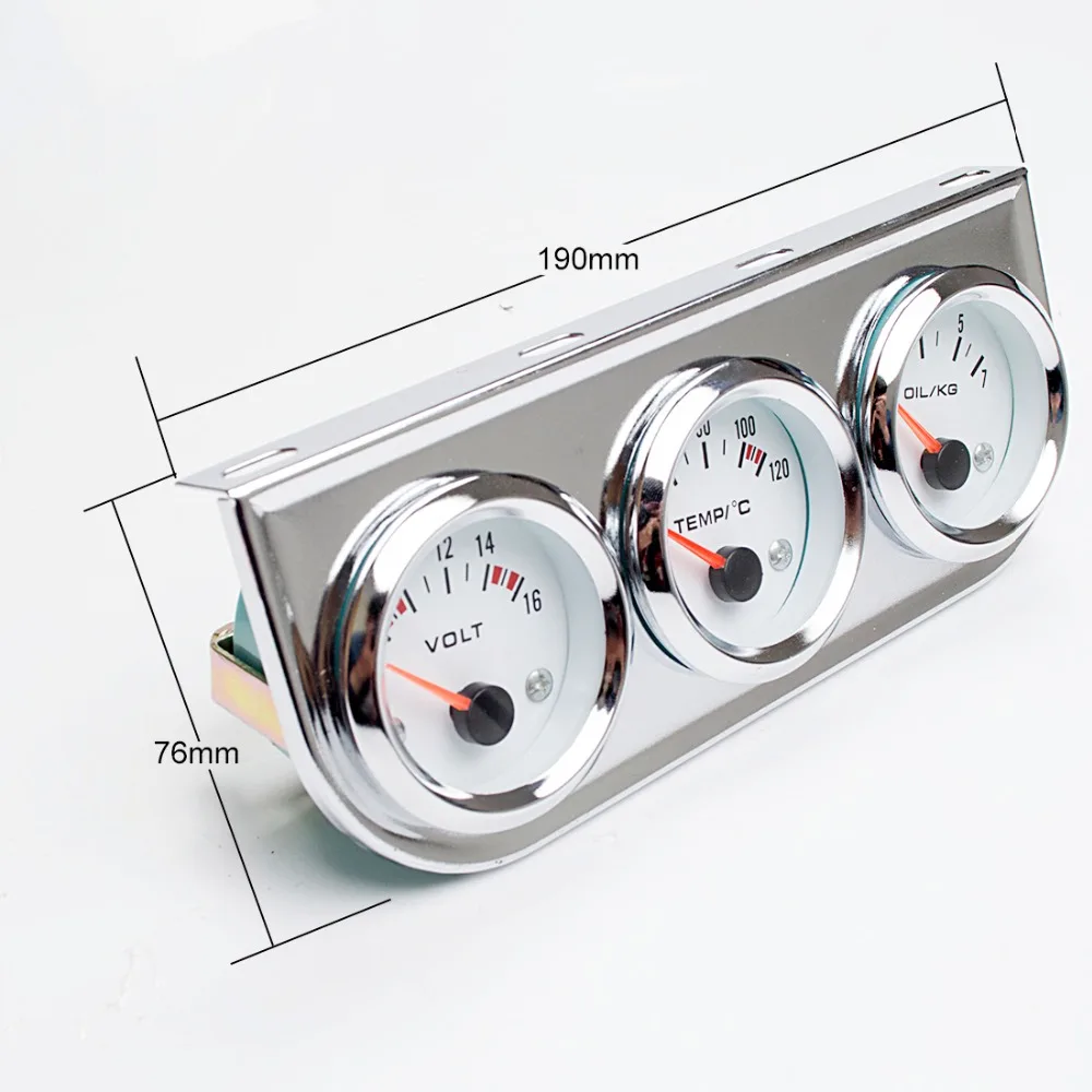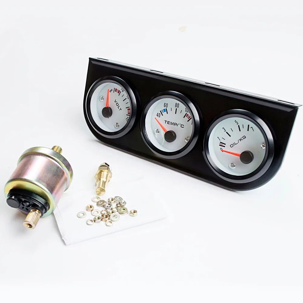 52 мм автомобиля датчик Напряжение/Температура воды (по Цельсию)/масло Пресс черный/хром ободок + белый/черный циферблат уход за кожей лица 3-в-1 комплект тройной метр