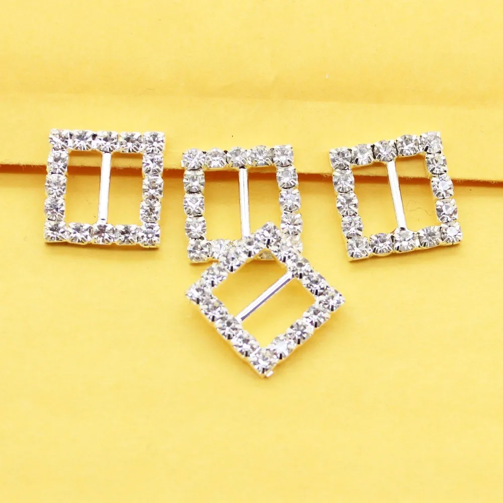 Блестящие 10 шт./компл. серебряные квадратные пряжки со стразами слайдер ленты приглашает на свадьбу Dceoratoin Diy Аксессуары Бесплатная доставка