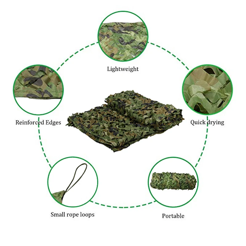 | Usage | Military Activities,Decoration,Hunting,Paintball games,Sunshade,Car-Covers,Hunting Blind Decoration, military exhibitions, landscaping layout, photography, bird watching, hunting ect. |