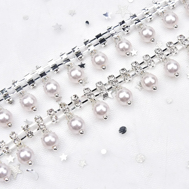 Suitable for DIY clothing bags shoes decoration, wedding the bride bridesmaid dress dress diamond chain, necklace, bracelet, bag decoration, bags, denim clothing accessories, mobile phone and other accessories. Is particularly suitable for belt series oh, slender dress or dress with a fashion pearl alloy chains, simple and beautiful!
