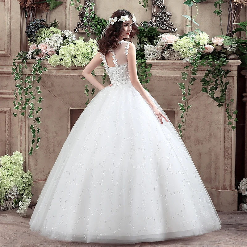 Женское кружевное свадебное платье It's yiiya белое со шлейфом без рукавов на лето