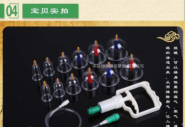 Технические характеристики: Название: 12 шт/24 шт вакуумные наборы Материал: экологически чистый пластик Детали: вакуумный пистолет 1 шт. + вакуумные чашки 12 шт./24 шт. + удлинительная трубка 1 шт. + руководство по эксплуатации 1 шт. Функции: детоксикация, улучшение состояния здоровья, потеря веса. И т. д .. Пользователи: беременным женщинам и детям запрещено. Размеры: 36*29*9 см Хорошие подарки для родителей, родителей и друзей. Особенности: 1. Привлекательный дизайн и прочный, прочный и ударопрочный материал. 2. Прозрачный корпус: легко регулировать внутреннее давление, и внутренняя обработка может быть четко видна. 3. Безопасное и хорошее уплотнение: Гладкий край дуговой чашки увеличивает площадь, соединяющую с кожей, что подтверждает лучшее уплотнение. 4. 7 размер чашки подходит для всех частей тела. 5. Простота в эксплуатации: огонь и электричество не требуются, безопасны и надежны, просты в эксплуатации.