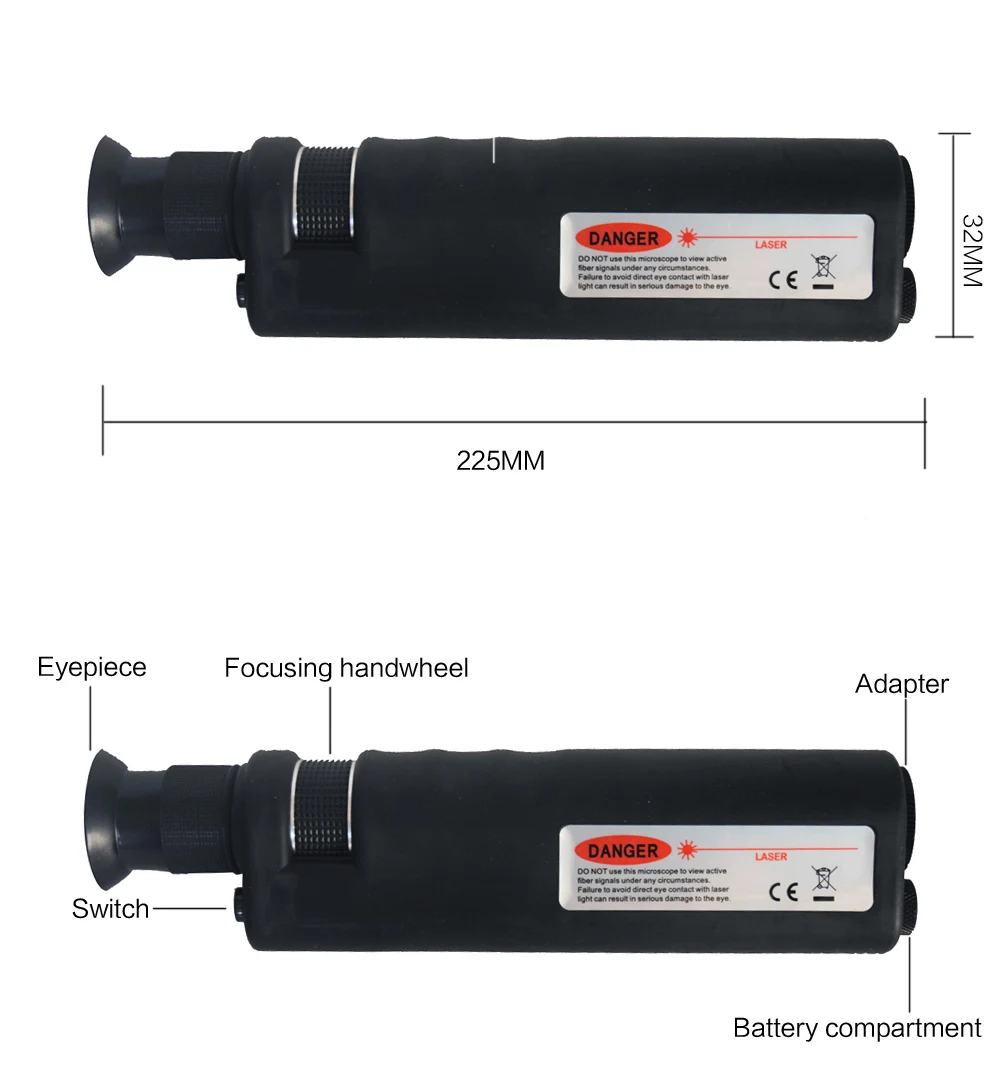 Этот полевой оптоволоконный микроскоп также является недорогим и высококачественным инструментом для проверки волокна, который доступен в увеличении 400X, светильник светодиодный ОД может обеспечить коаксиальное освещение концевой поверхности разъема. Это система с высоким разрешением для детального наблюдения за царапинами на торце, дефектами и загрязнениями методом освещения. Этот микроскоп в основном используется на месте.