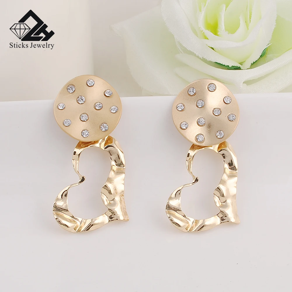 Новый стиль золотые висячие серьги с полным кристаллом роскошные свадебные ювелирные изделия оптом