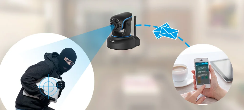 Отправьте вам оповещения по электронной почте и push-уведомления на ваше устройство, когда кто-то обнаружен. загрузите и сохраните снятые изображения/видео на FTP-сервер. записывайте И сохраняйте обнаруженные движения видео на вставленную карту Micro SD (может быть до 64 Гб). выберите конкретные зоны обнаружения движения, чтобы отслеживать любую область, которую вы хотите, и установите зоны обнаружения движения, чтобы уменьшить Ложные сигналы тревоги.