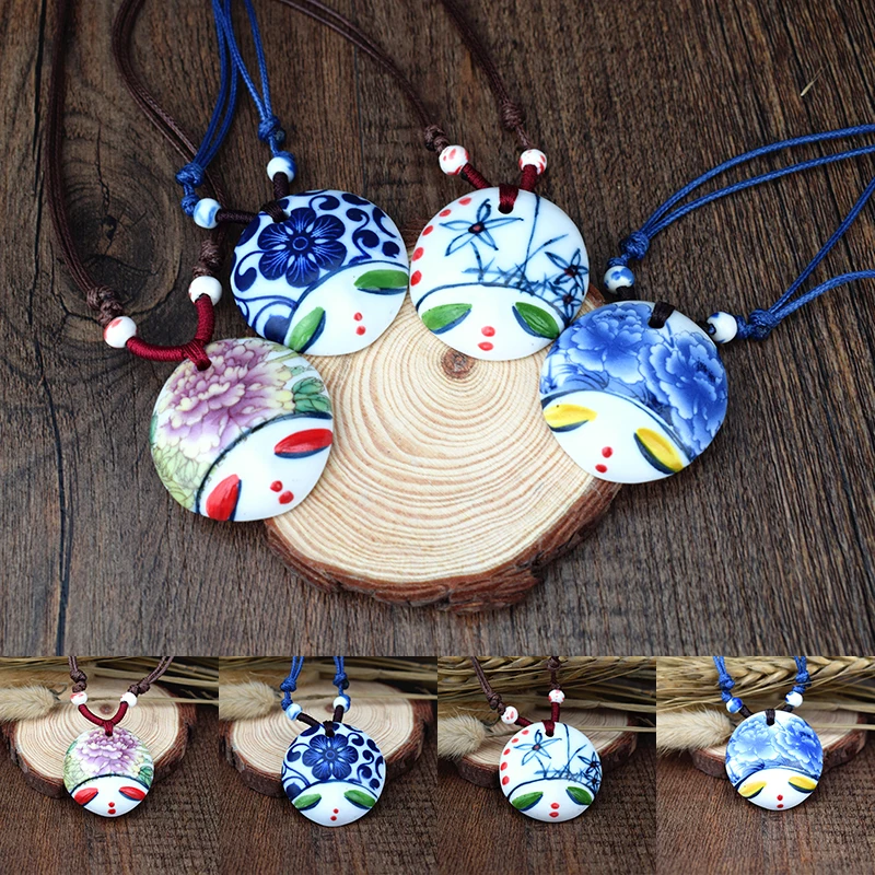 Керамическое ожерелье ручной работы модные ювелирные изделия в китайском стиле винтажная Милая кукольная подвеска ожерелье персонализированные трендовые аксессуары US $1,73