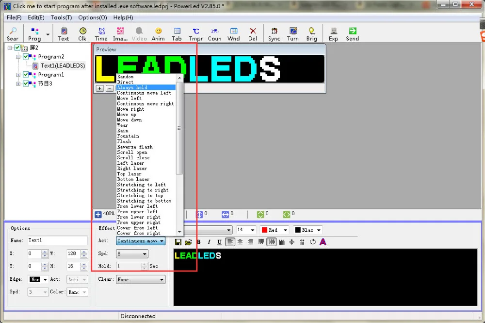 Различные действия прокрутки для вашего выбора, такие как мигание, статическое Движение влево, перемещение вправо и так далее.