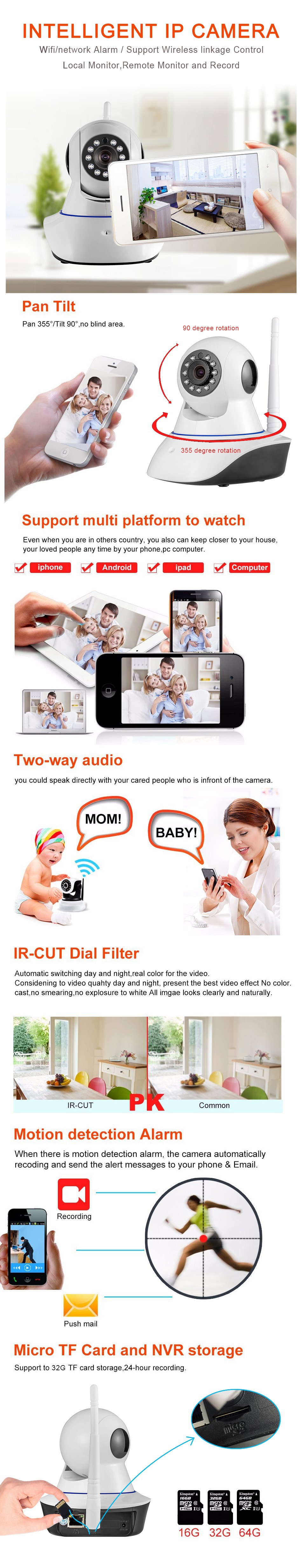A: Да! Пользователь может включить «Обнаружение движения» с помощью приложения, и когда он обнаруживает движущиеся объекты, камера сделает фотографию и отправит ее на электронную почту пользователя, И приложение на мобильный телефон будет шокировать.