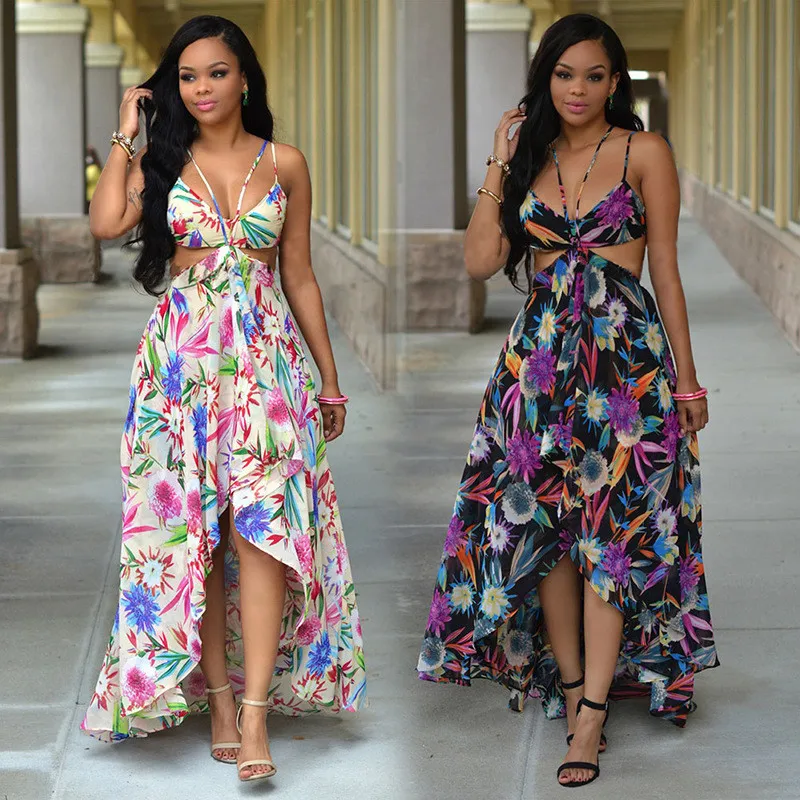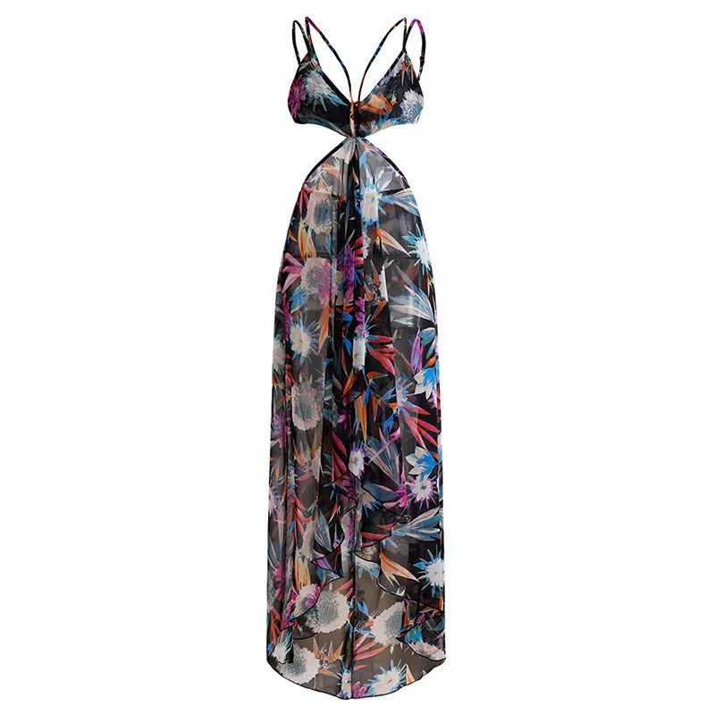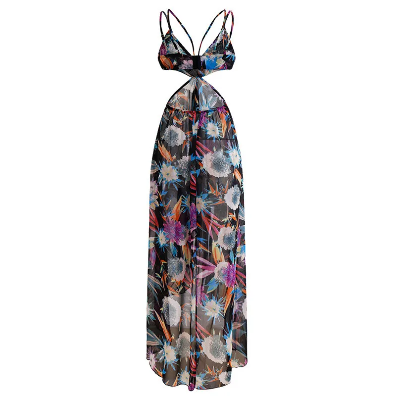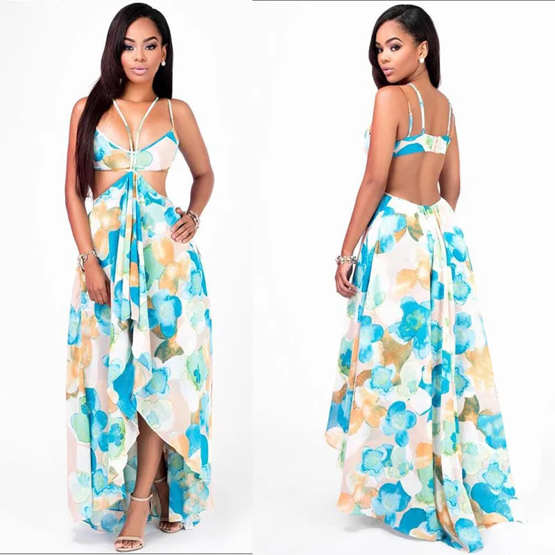 Женские летние пляжные макси платье 2021 сексуальное с лямкой на шее открытой