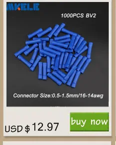 100 шт. синие стыковые разъемы BV2: Цвета: синий Материал: медь + ПВХ + жести Максимальный ток: 27A Размер разъема: 0,5-1,5 мм/16-14awg кабель Длина: 2,5 см (каждая)