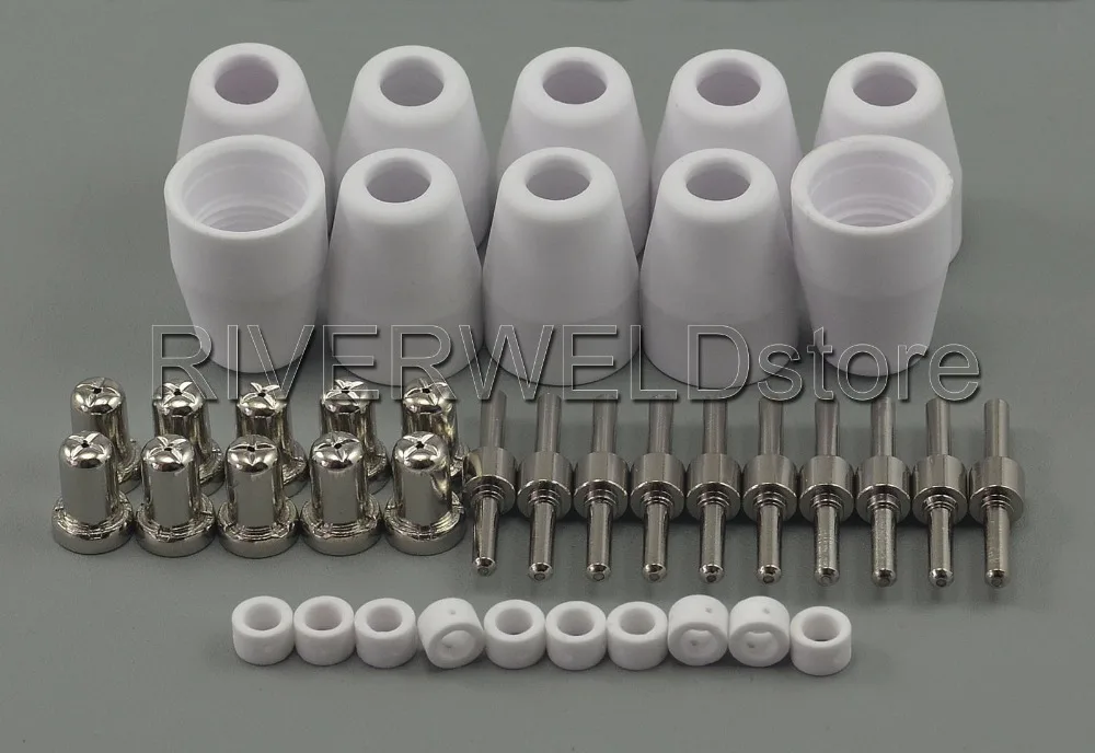 Электроды и насадки никелированные на меди, лучшие проводящие свойства;Эти расходные материалы подходят для PT-31 и LG-40 плазменный резак фонарь;