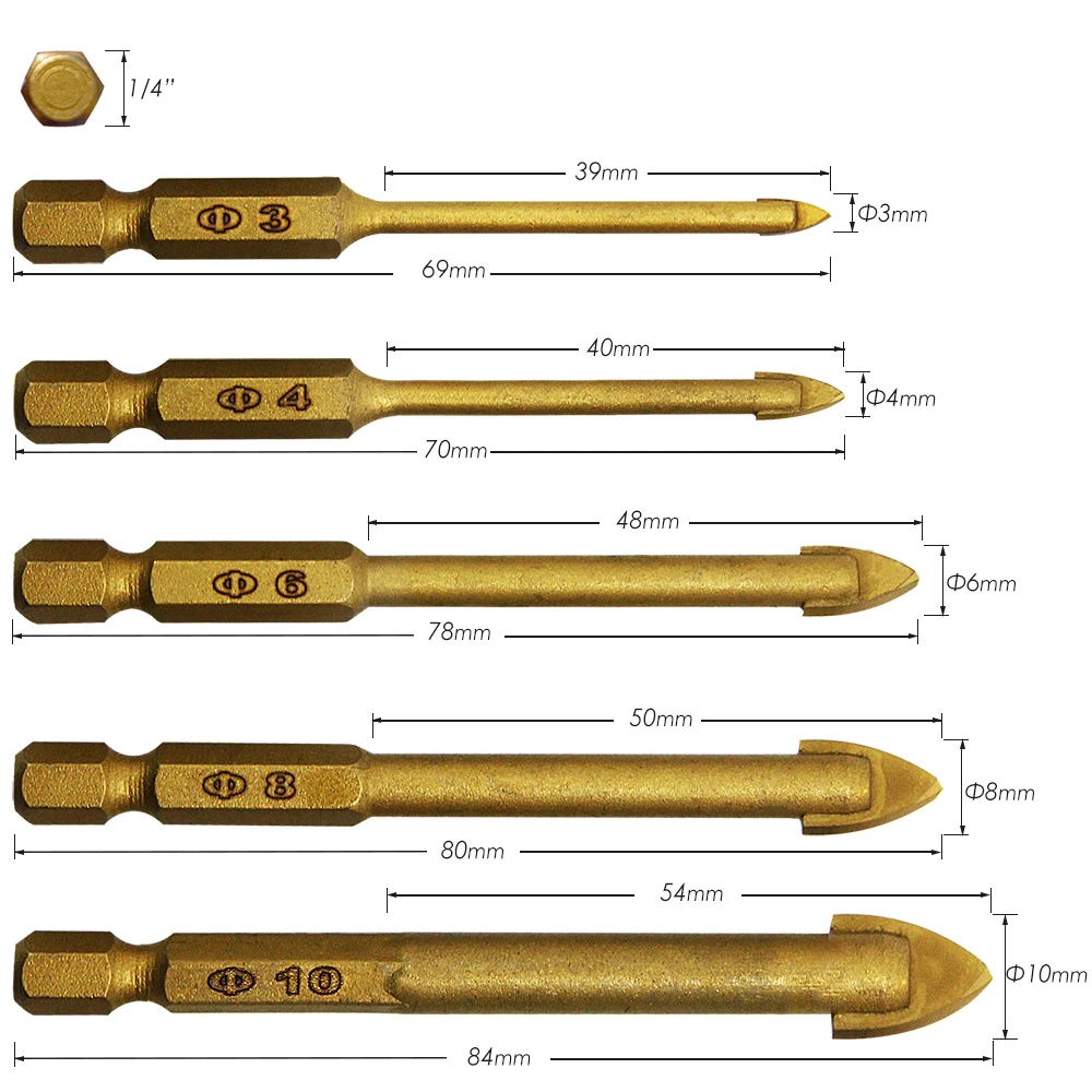 5 шт. набор стеклянных Сверл с титановым покрытием с твердосплавными наконечниками