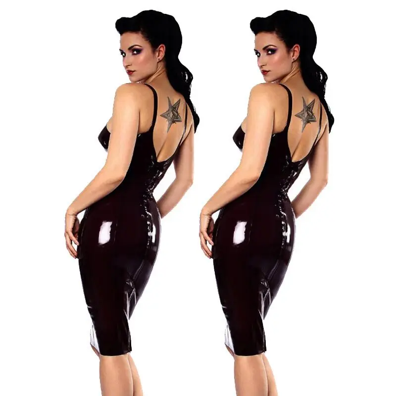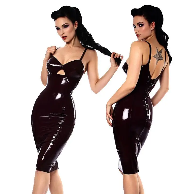 1. Товар | Женское сексуальное платье-футляр из кожи Wetlook, эротическое Эротическое платье-футляр в стиле порно с полым бюстгальтером, глянцевое облегающее платье средней длины с латексной талией |