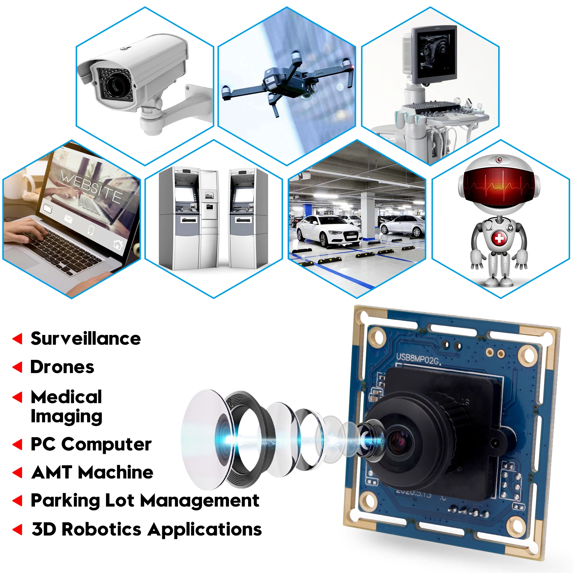 Наша usb-камера включает VGA 640X480,1MP,1.3MP,2MP,5MP и разрешение 8MP