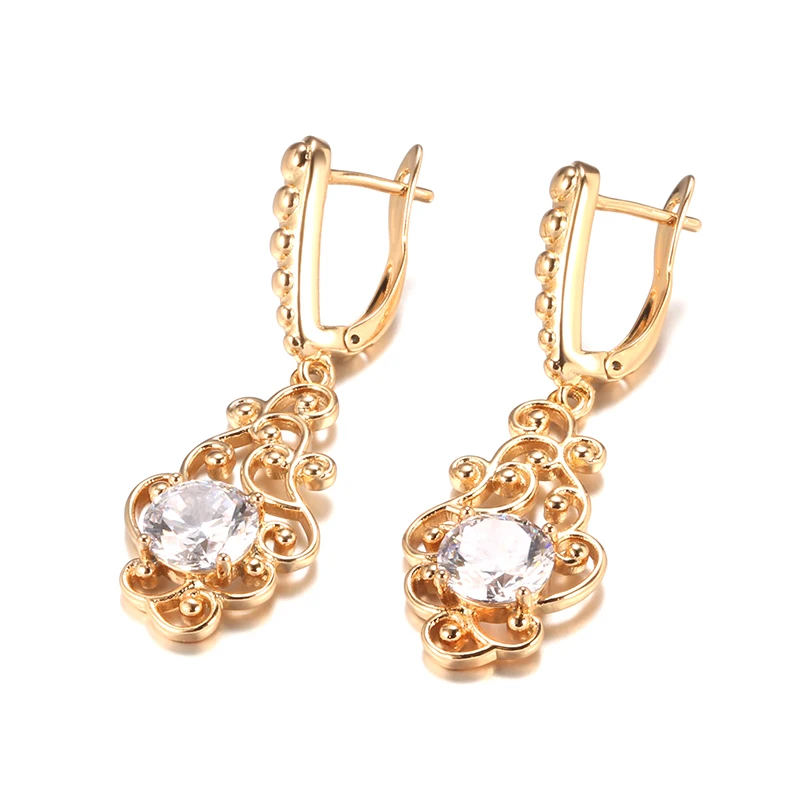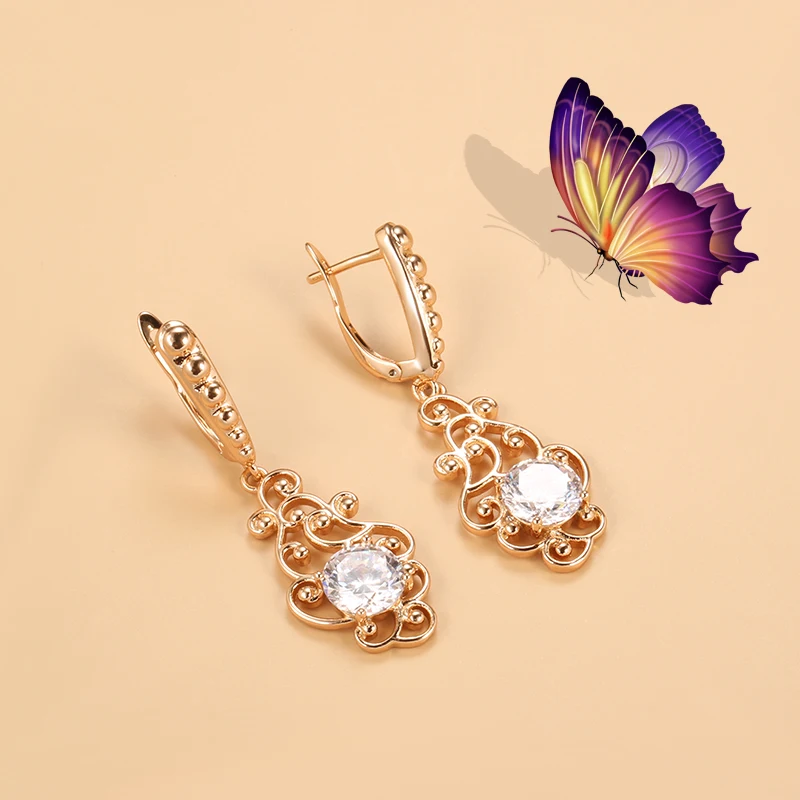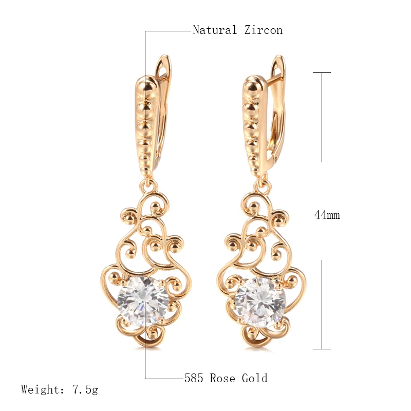 Kinel 2021, модные длинные серьги из розового золота 585 пробы для женщин, этнические полые серьги с цветком, натуральный циркон, висячие серьги, хорошее ювелирное изделие, подарок