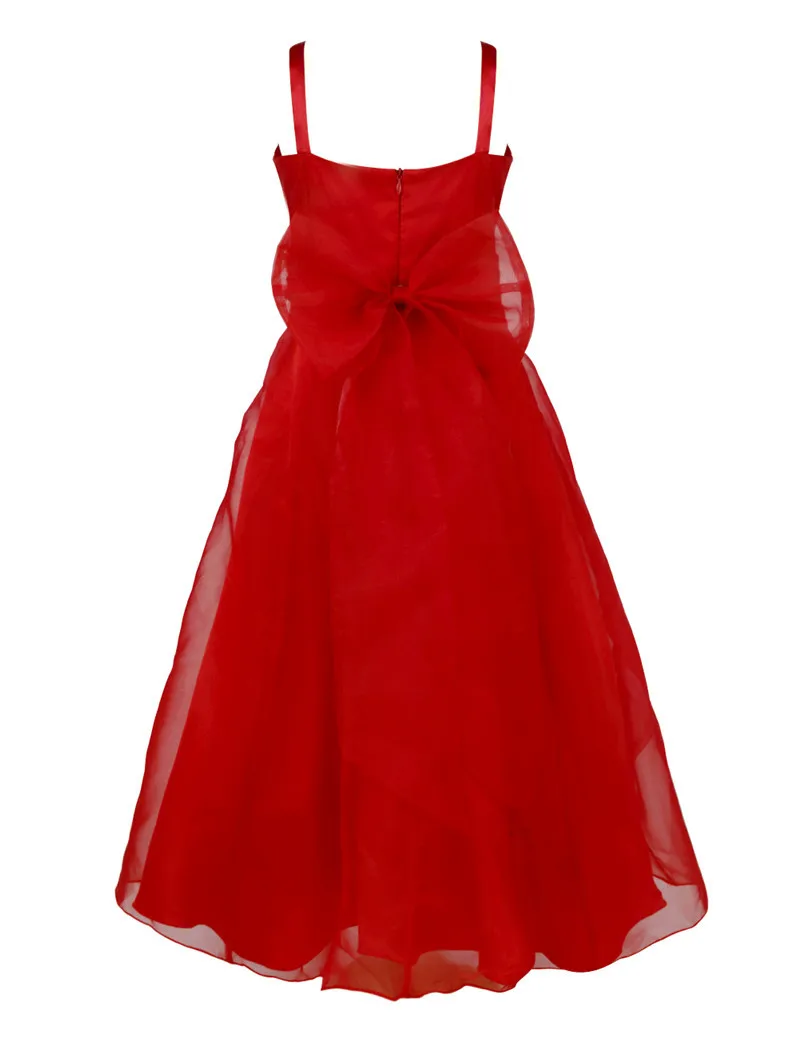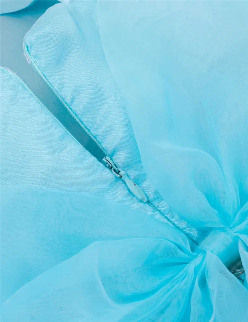 Скрытая молния на спине, большой бант из органзы, приколотая брошь на спине