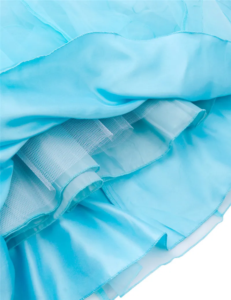 Трехслойная юбка, верхний слой из органзы с прикрепленными оборками, 1 слой атласа и 1 подкладка с сеткой для дополнительной полноты.