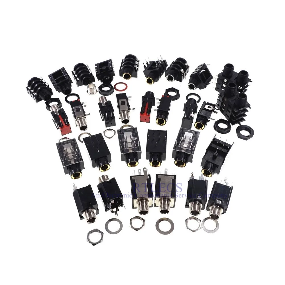 Два порта TRS 1/4 "6,35 мм стерео аудио разъем для телефона гнездо для наушников 6 проводник 12 контактов 6 переключатель прямой угол