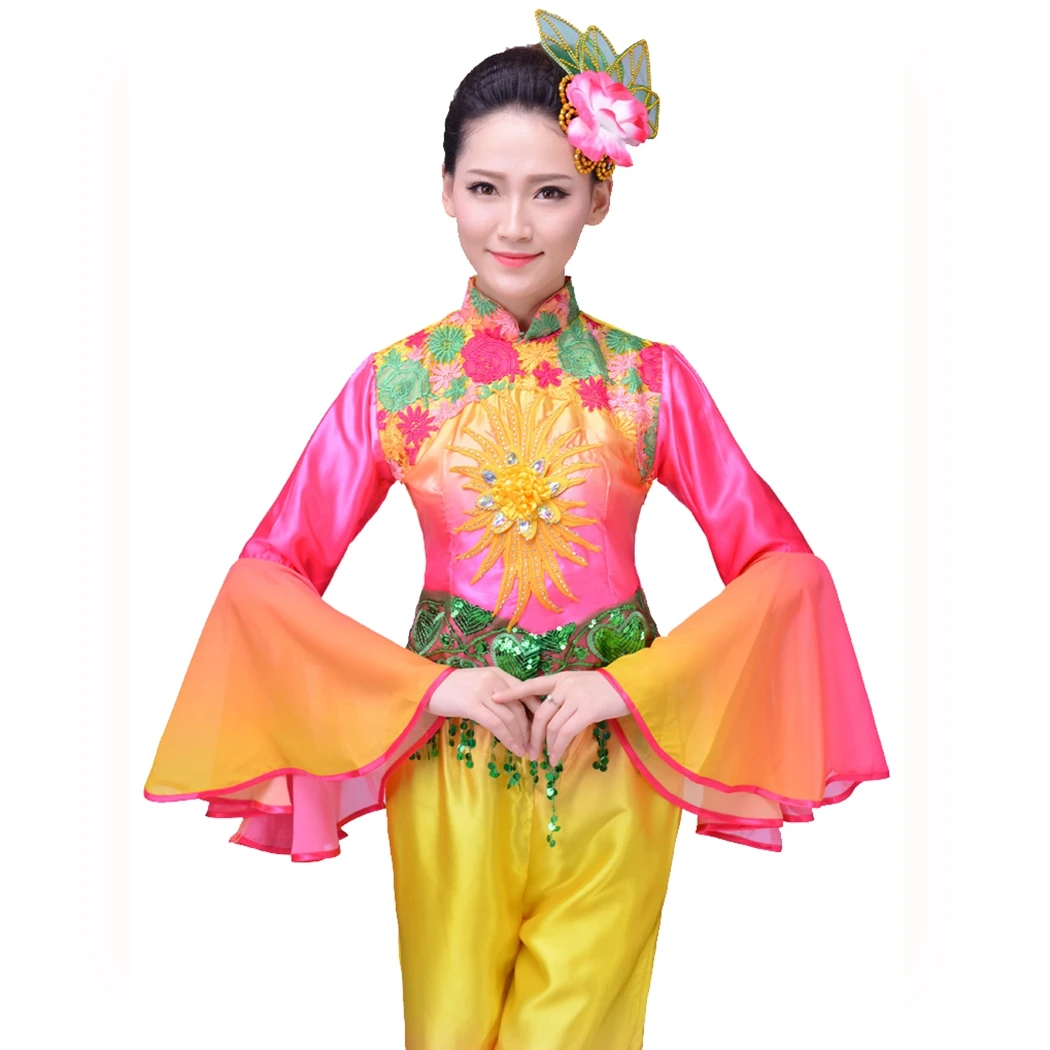 Yangko Dance Costume Ladies National Stage Costume Chinese Fan Dance Traditionnel Chinois Homme Chinese Folk Dance Costume