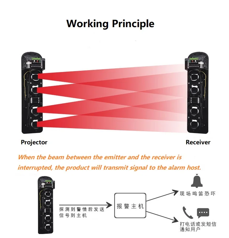 Чистая цифровая схема управления DSP, передача и прием с помощью программирования чипов DSP, высокомощный инфракрасный прием трубки, Технология цифровой преобразования частоты с низким энергопотреблением, уменьшение ложных срабатываний и прекращение упущений, реально против инфракрасного интеллектуального вторжения