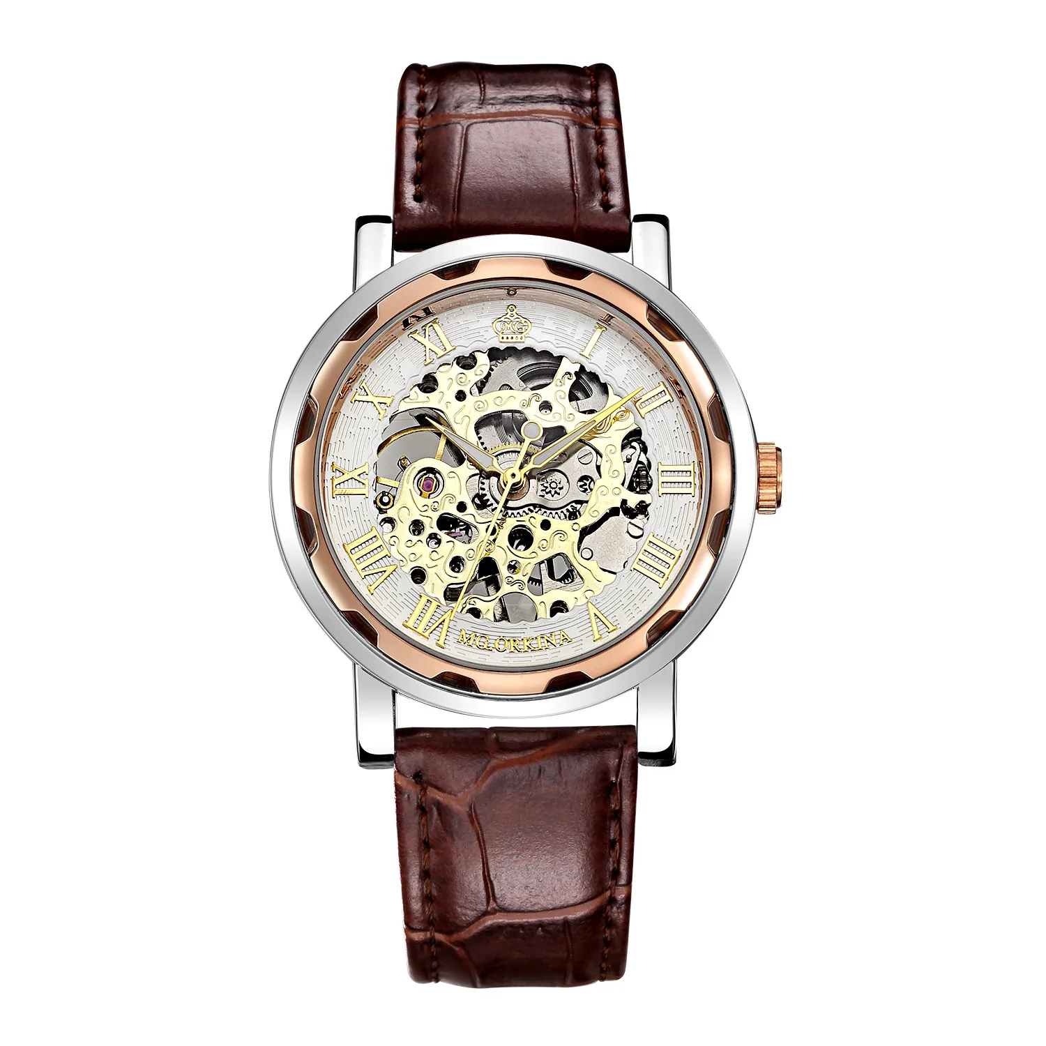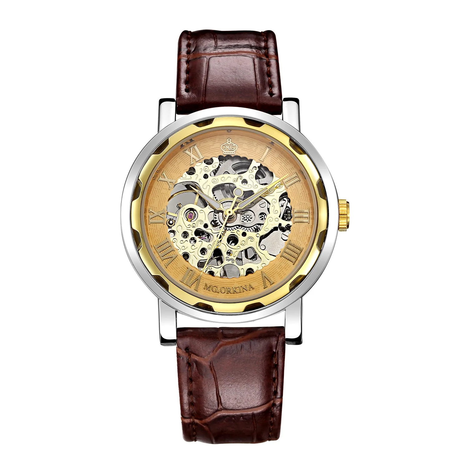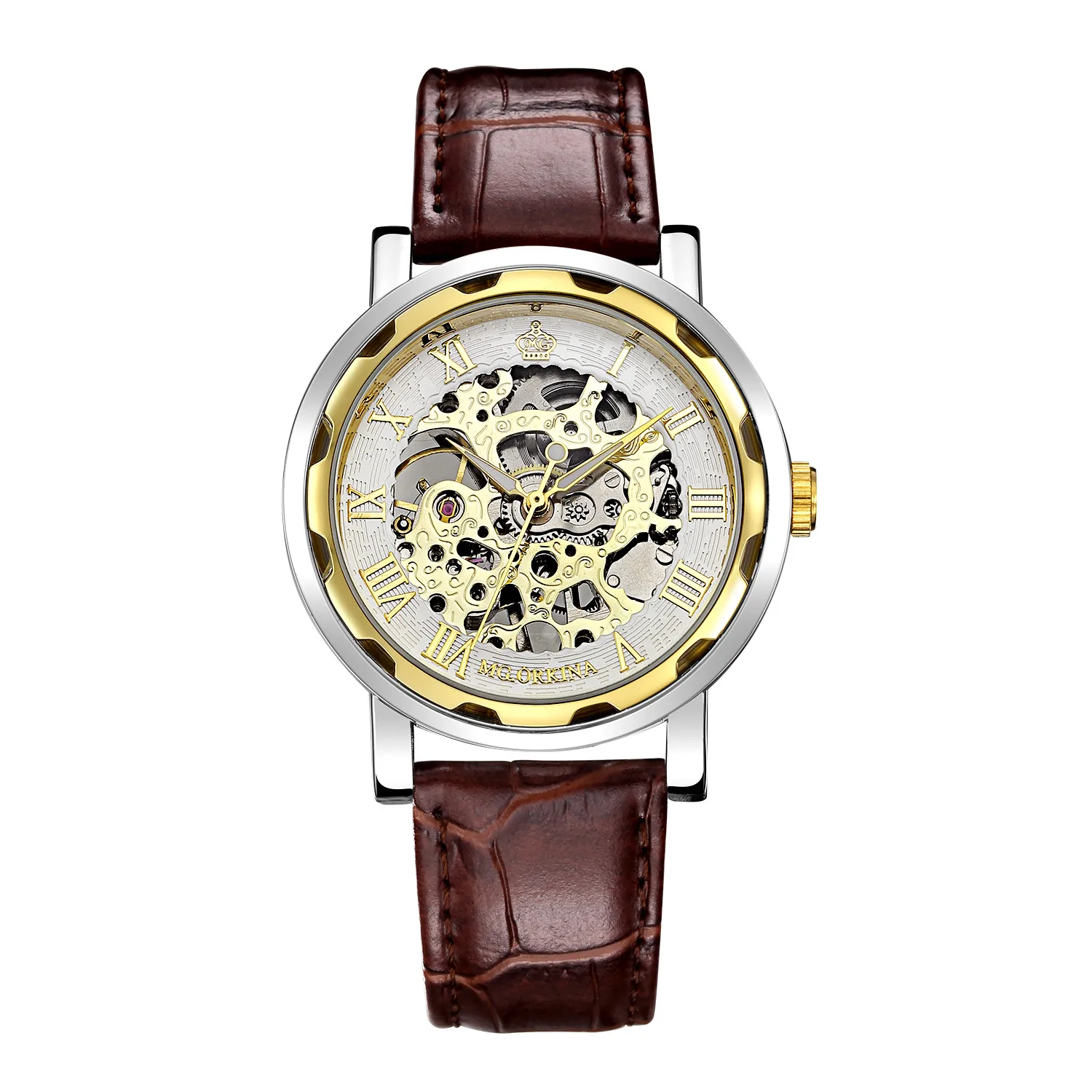 Новые золотые мужские наручные часы с кожаным ремешком, Уникальные повседневные механические часы в стиле стимпанк, мужские часы Heren Horloge Особенности: 100% новый бренд и высокого качества Уникальный дизайн с кожаным ремешком, подходит для мужчин и мальчиков Механические часы с ручным ветром 12 месяцев гарантии Размеры: Диаметр циферблата часов: 4,2 см прибл. Ширина ремешка: 2,00 см, длина: 23 см, чехол Толщина: 1,5 см прибл. Посылка включает в себя: -Оригинальные часы-1 шт. Внимание: Механические часы позволяют время +- 2 минуты в течение 24 часов. Это международные механические часы. Если кто-то заботится, пожалуйста, не покупайте. Спасибо Рекомендации по использованию механических часов: 1. Ручное намоточное движение часов должно быть намотано один раз в день одновременно, чтобы обеспечить достаточно энергии, чтобы управлять часами в течение следующих 24 часов. 2. Автоматический механизм часов энергии от движения пользователя руки. Поэтому вам не нужно вручную наматывать часы под обычный чехол. Возможно, потребуется ручная намотка из-за того, что физическая активность пользователя не достаточно, чтобы управлять часами. Пожалуйста, убедитесь, что заводная головка поворачивается менее чем на 20 кругов. 3. Не надев более 40 часов автоматических часов, поверните заводную головку на 20 кругов, чтобы вновь начать движение системы привода, прежде чем носить ее снова. 4. Чтобы предотвратить попадание влаги в чехол для часов и обеспечить водонепроницаемость, убедитесь, что головка всегда находится в закрытом состоянии.