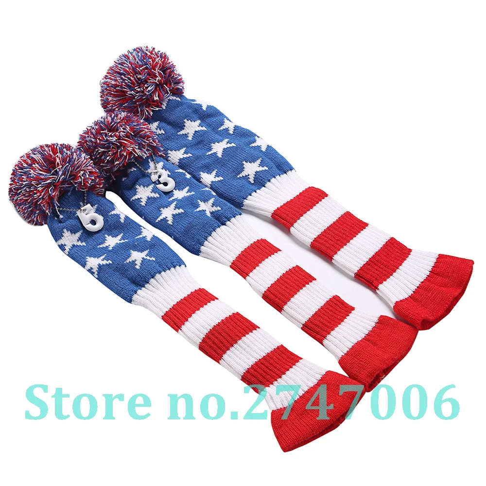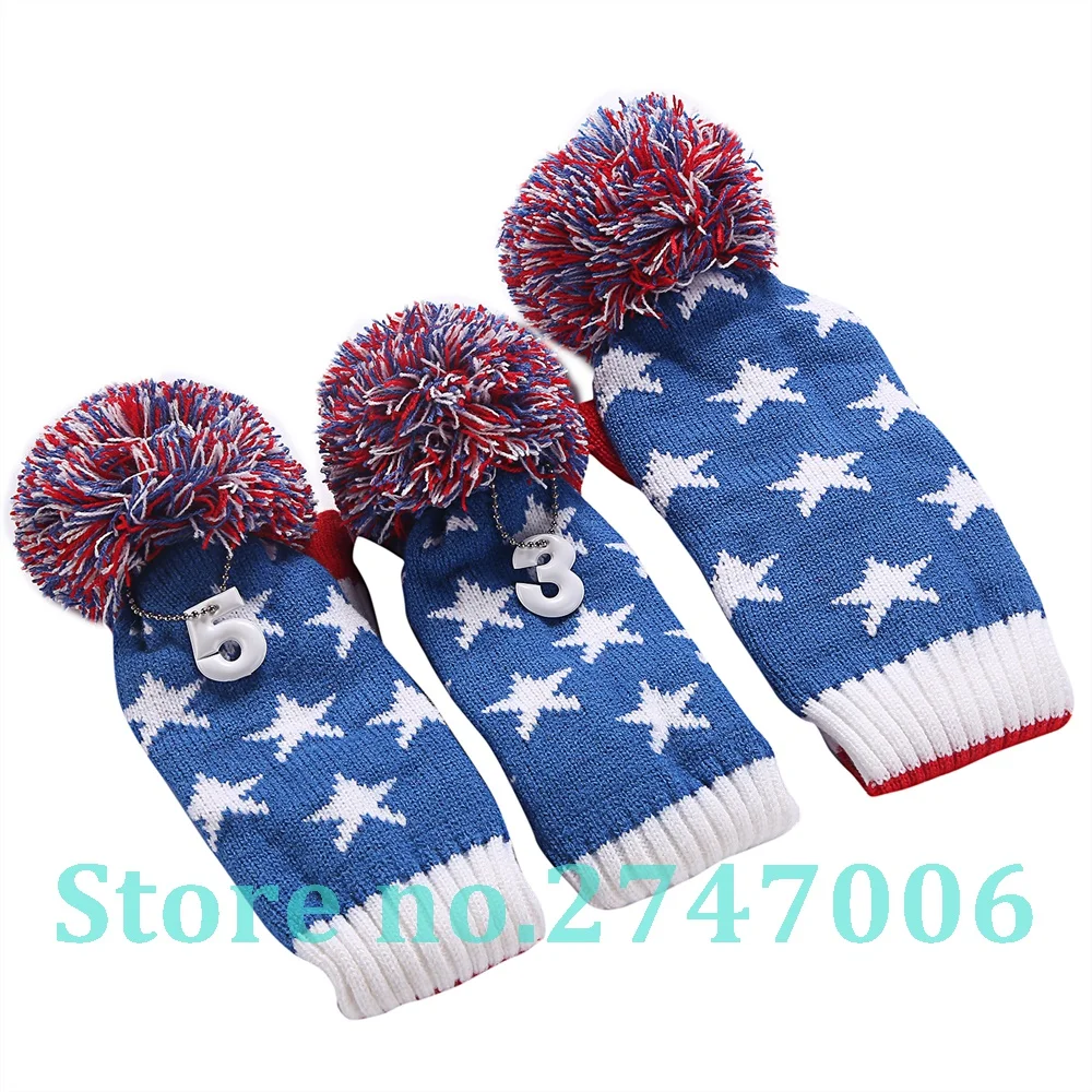 3 шт./компл., чехлы со звездами и полосками, 1 #3 #5 #, шерстяные вязаные чехлы с помпонами, чехлы для клюшек для гольфа, водителей, фарватеров, деревянных головок