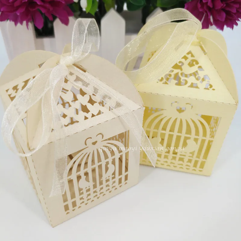 50 шт. клетка для птиц, лазерная резка, свадебные декоративные сладости коробки, Подарочная коробка для конфет с лентой на новый год, Рождество, декор 8zSH134