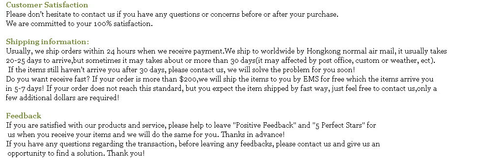 2. Мы предлагаем бесплатную доставку компанией DHL.EMS и т. Д. (минимальная стоимость составляет 200 долларов США).