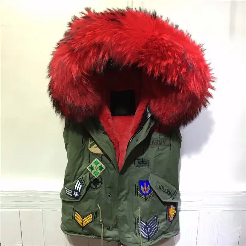Полностью Подкладка из настоящей Кореи высококачественные красные меховые нашивки fuax