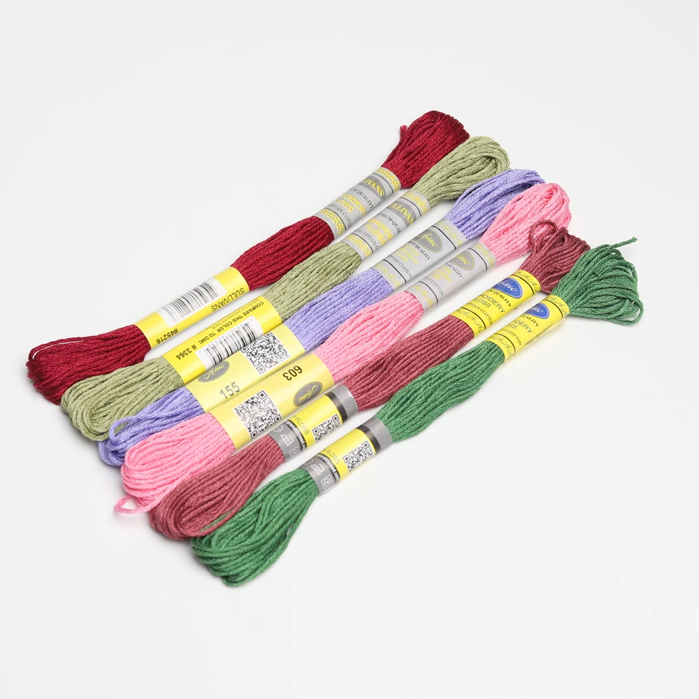 6 прядей из 100% чистого хлопка, одна прядка используется для тонкой ручной вышивки, поперечной прошивки, шпатель, вязание крючком, плетение волос, нарезание резьбы, игла точечные тренировки.