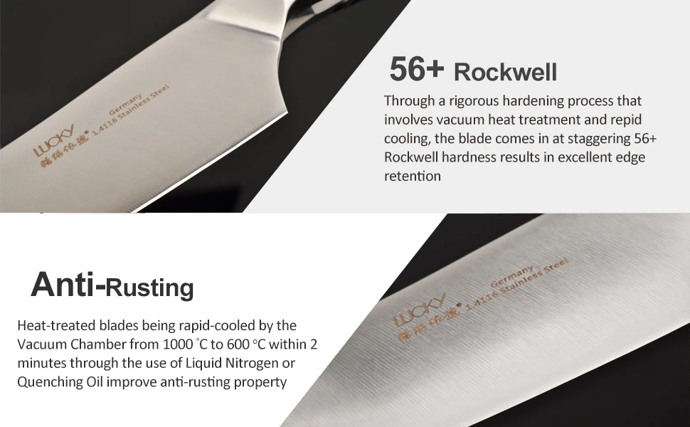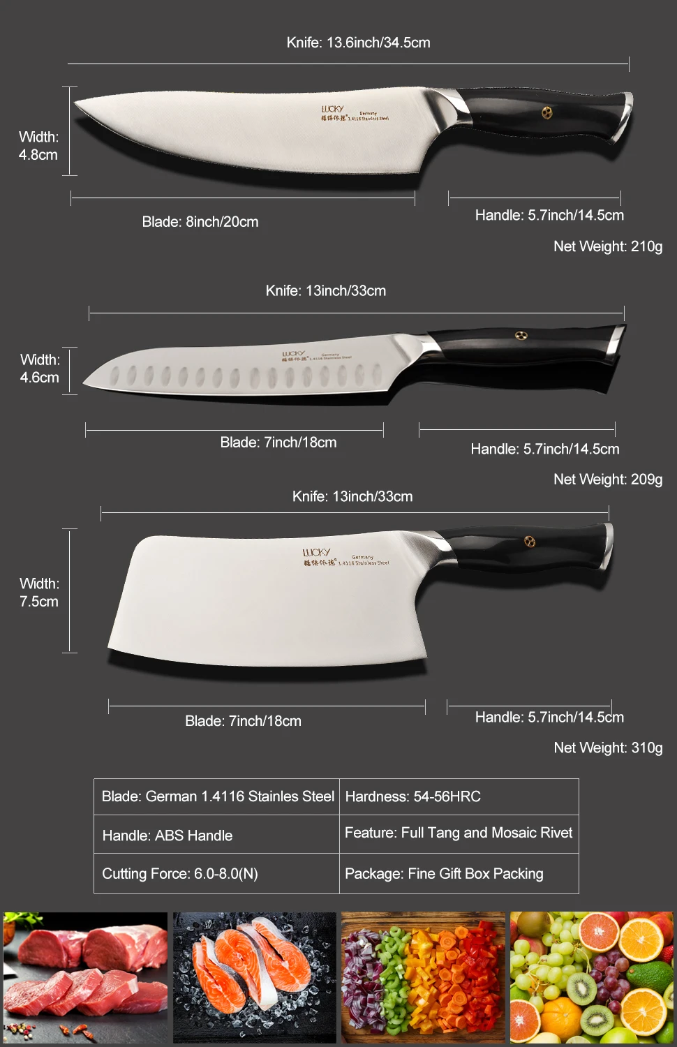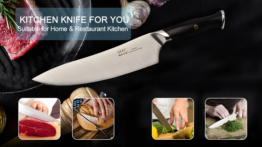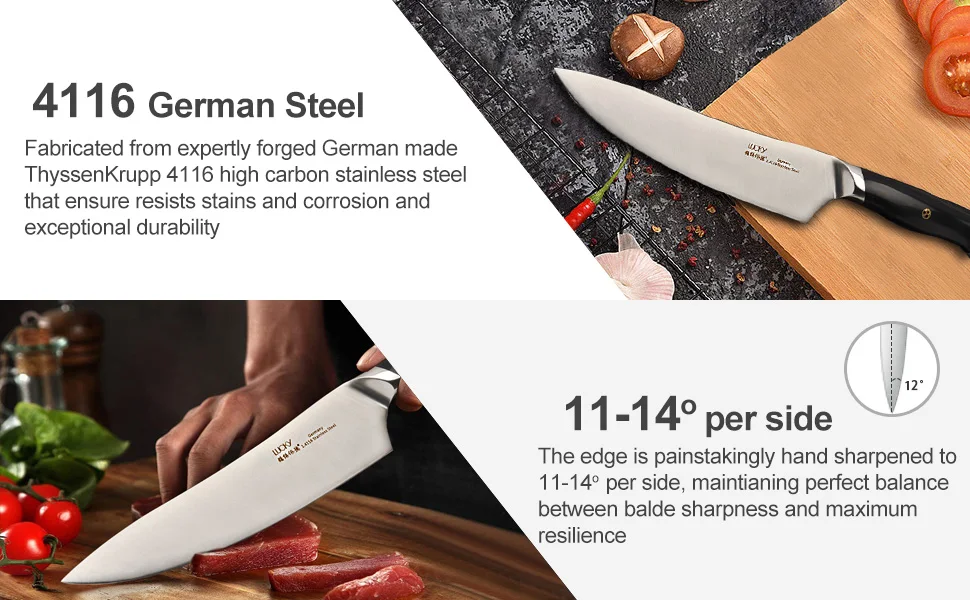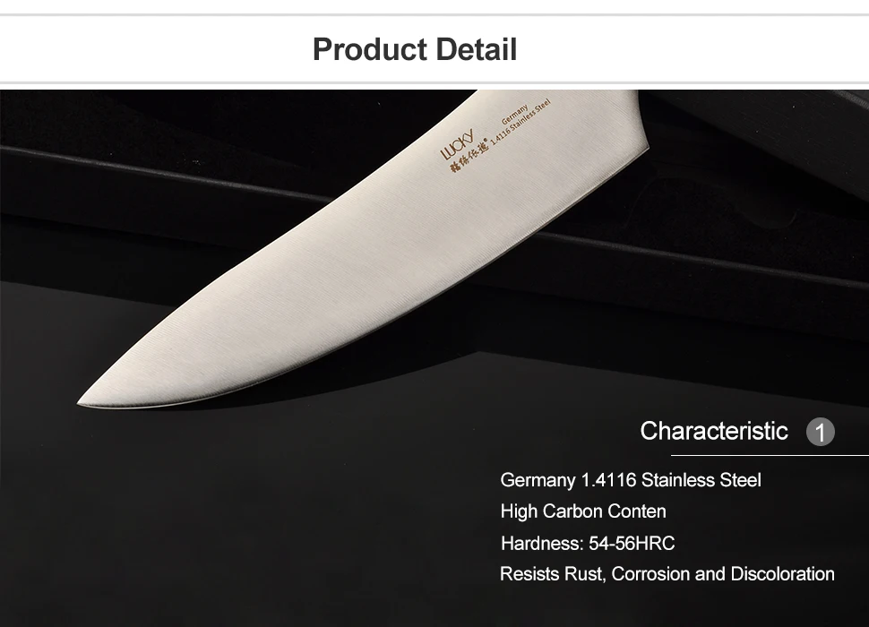 Материал лезвия ножа шеф-повара импортирован немецкой нержавеющей сталью 1,4116, высокой твердостью, долговечностью острым