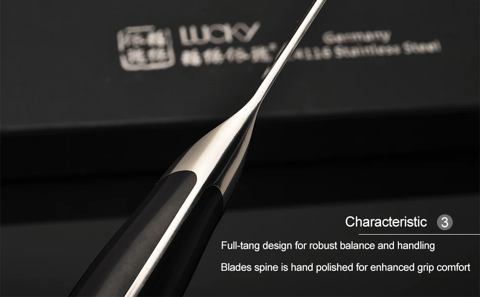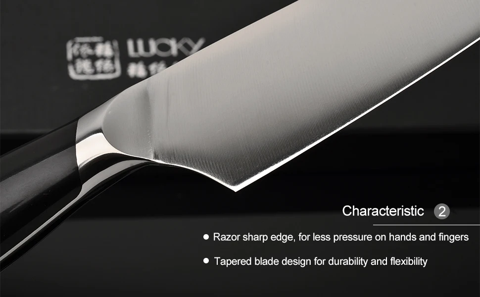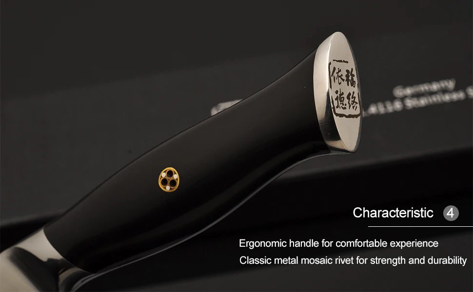 Материал лезвия:Импортированная Германия 1,4116 нержавеющая сталь из Германии ThyssenKrupp группа, до высокого стандарта Германии Din17400.