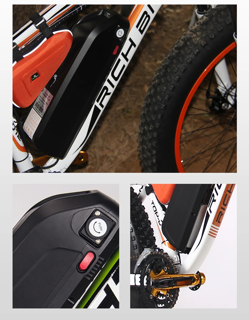 Модель велосипеда RT-012 1000 Вт цвет чистый-серый/черный-оранжевый/черно-зеленый