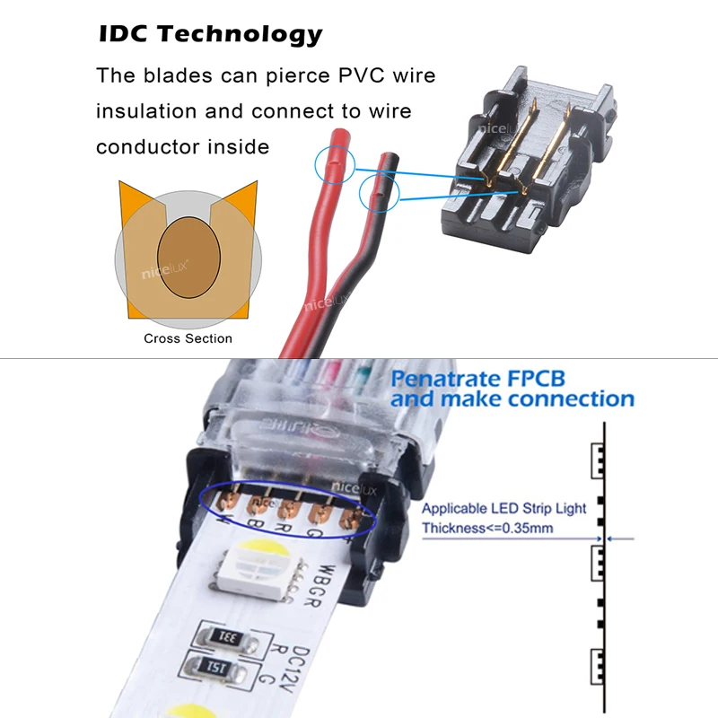 How to Use(Example: connector for 10mm 2pin IP65 LED strip to wire):