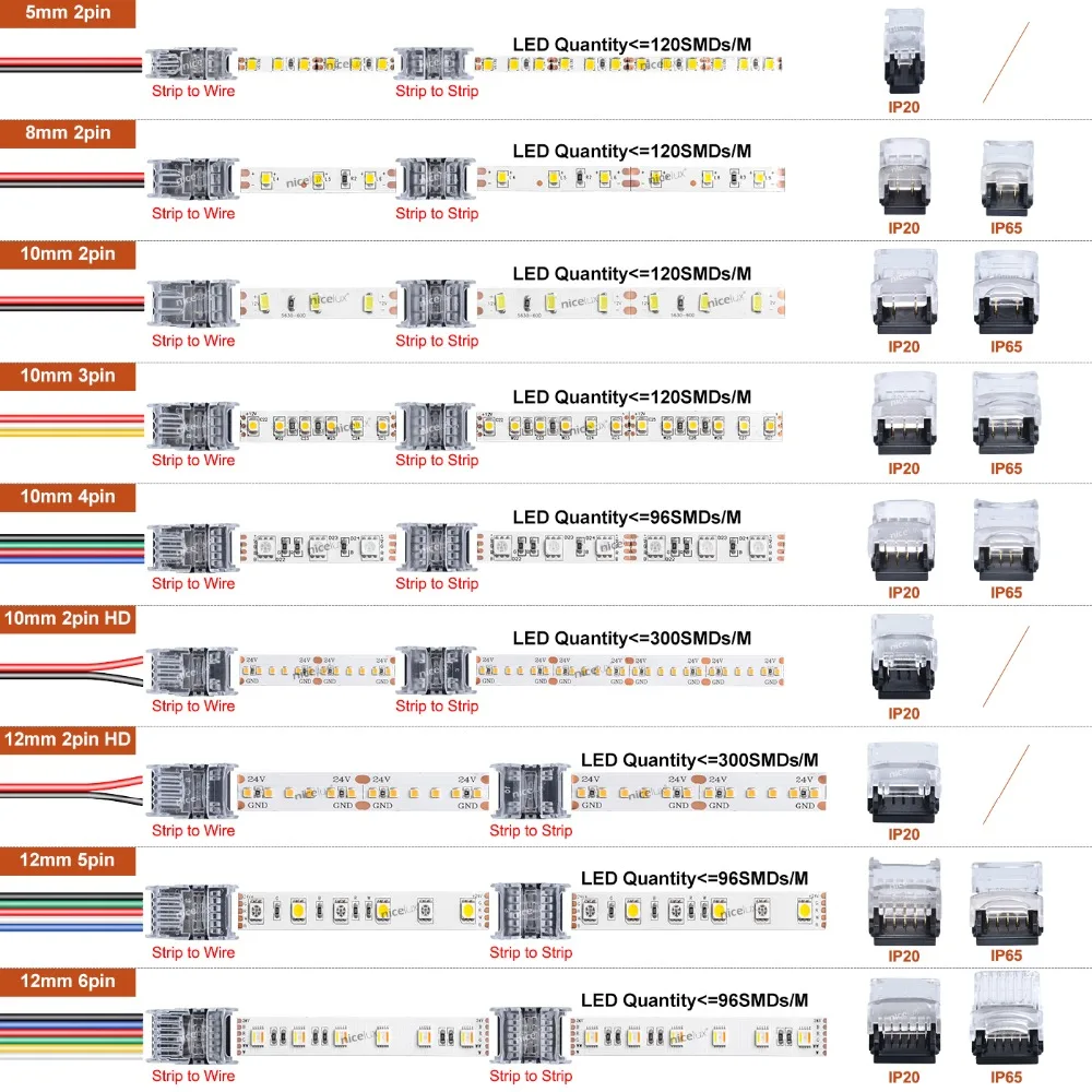5pcs 2pin 3pin 4pin 5pin 6pin LED Strips Connector for RGB RGBW RGBWW 3528 5050 LED Strip Light Wire Connection Terminal Splice