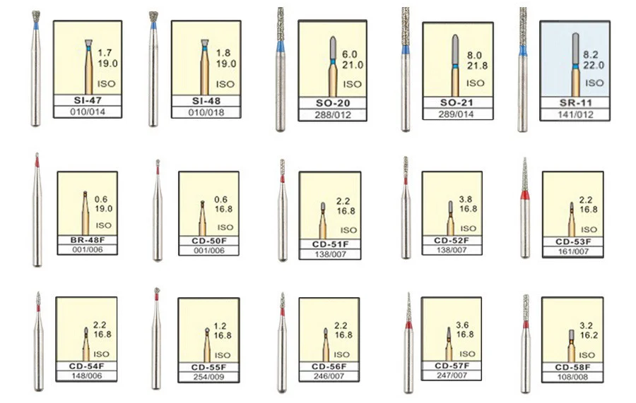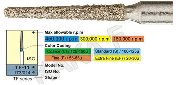 4. Произведено в соответствии с международными стандартами, диаметр хвостовика 1,6 мм. Не повреждает высокоскоростной наконечник.