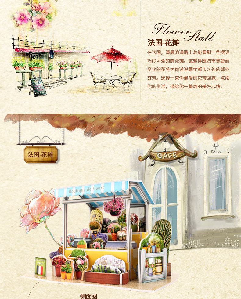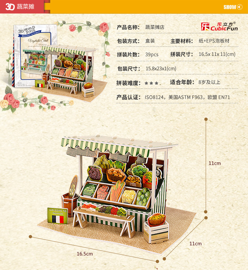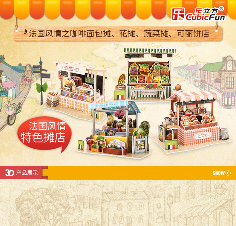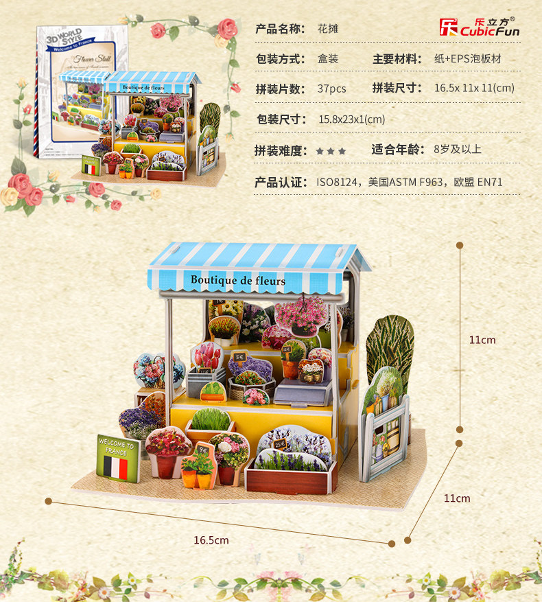 Cubicfun 3D головоломка самодельная Бумажная модель мировой Стиль архитектурная модель французский базар Специальный Стенд подарок на день рождения 1 шт