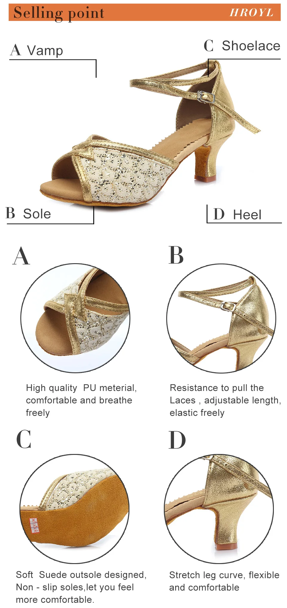 Новинка; Женская обувь для латинских танцев; Удобные танцевальные сандалии на мягкой подошве для сальсы и Танго; Каблук 5 см 7 см; HROYL