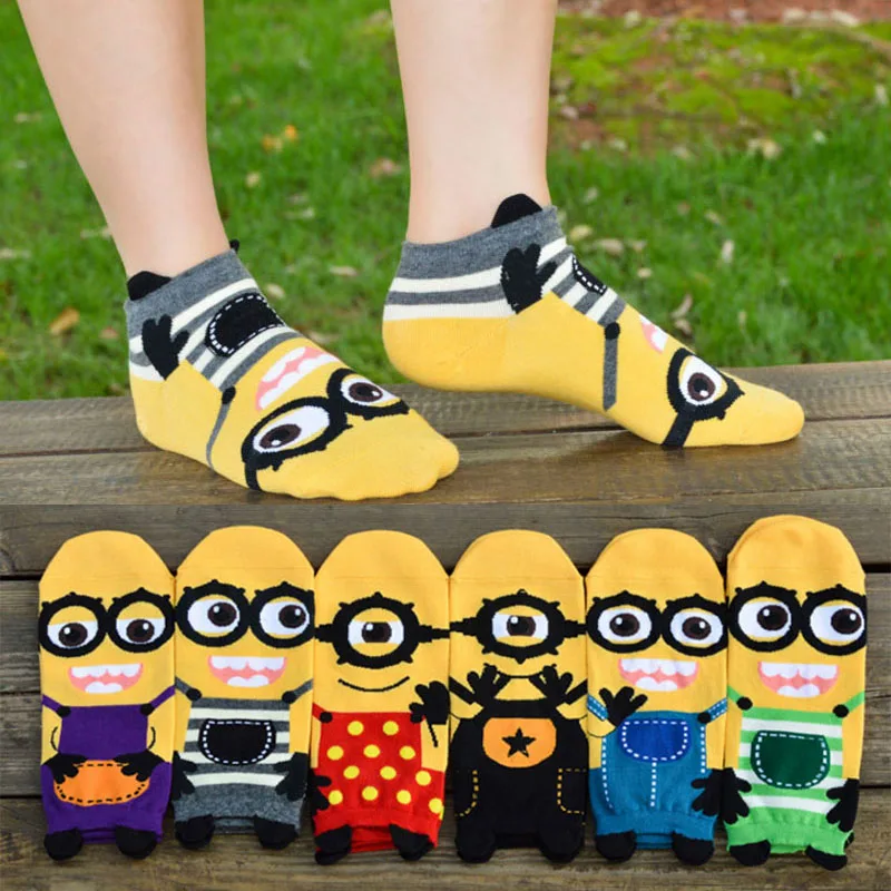 12 штук = 6 пар женщина мультфильм Миньоны шаблон трубки забавные новинки носки Цифровой 3D печати Harajuku низкого кроя лодыжки гадкий милый
