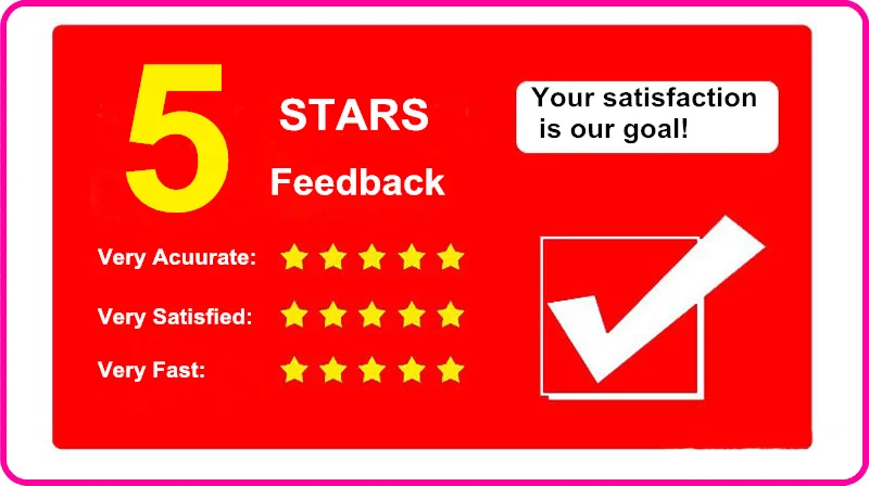 Пожалуйста, оставьте нам ваши положительные отзывы 5 звезд, если вы удовлетворены нашими товарами и услугами.