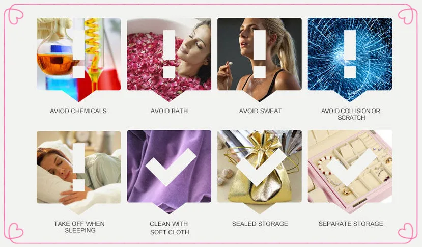 О: пожалуйста, снимите его во время мытья или душа. И избегайте царапин на поверхности ювелирных изделий.