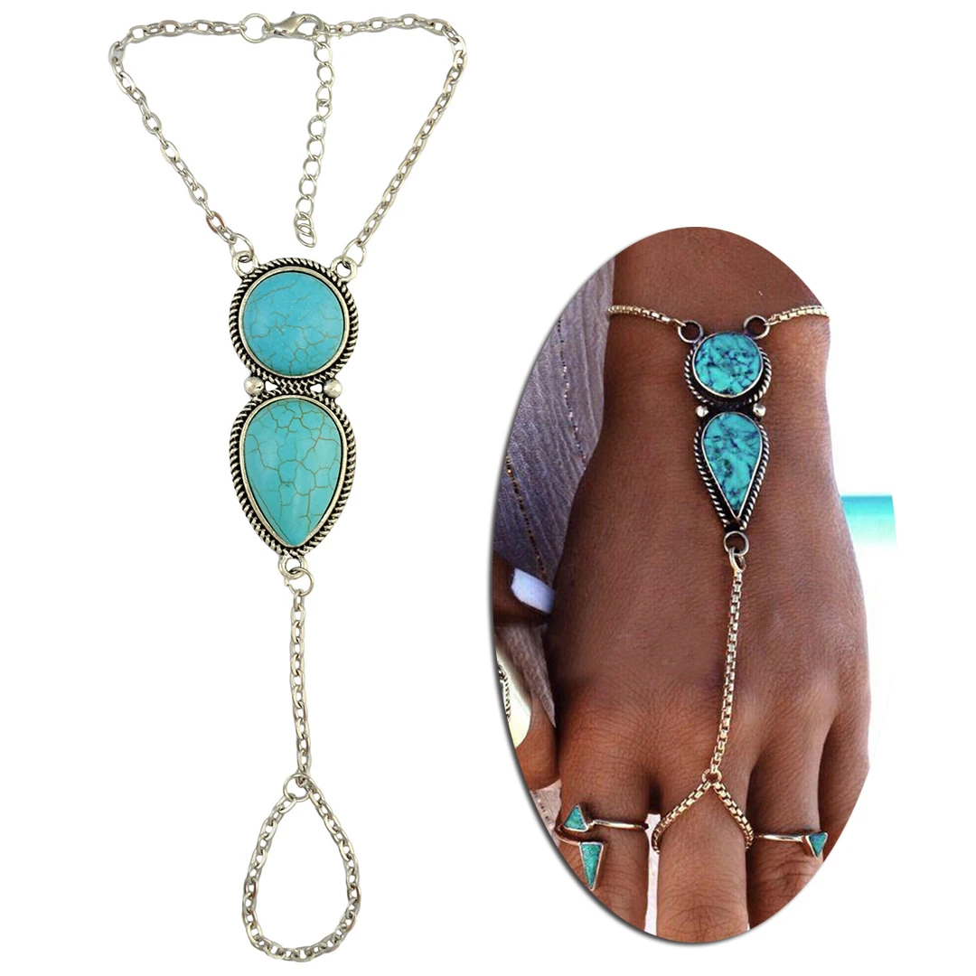 Женский браслет на палец с голубым камнем, в этническом стиле, ювелирное изделие в богемном стиле, подарокUS $2,54