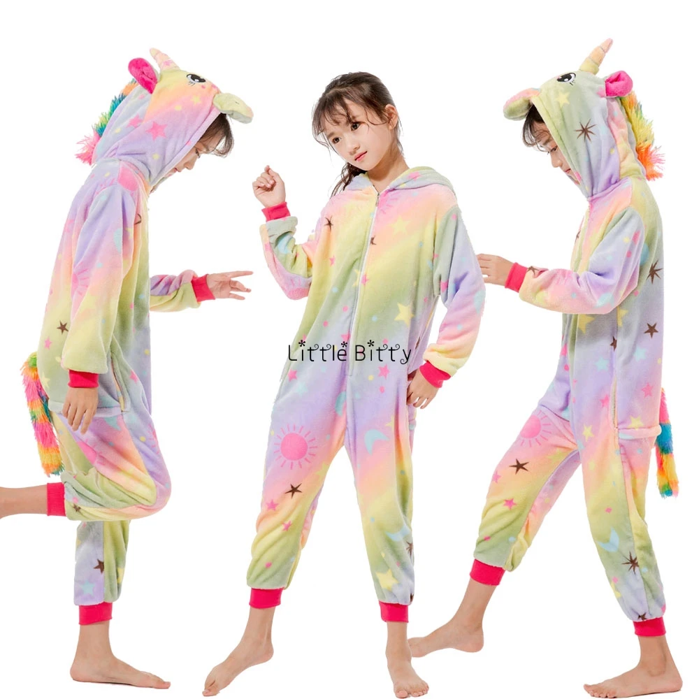 Осенне зимние пижамы для мальчиков и девочек пижамные костюмы с единорогом