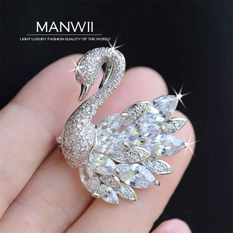 MANWII Vintage brooch cubic zirconia shine swancrystal enamel pin large brooches for women brooches for wedding bouquets AA103