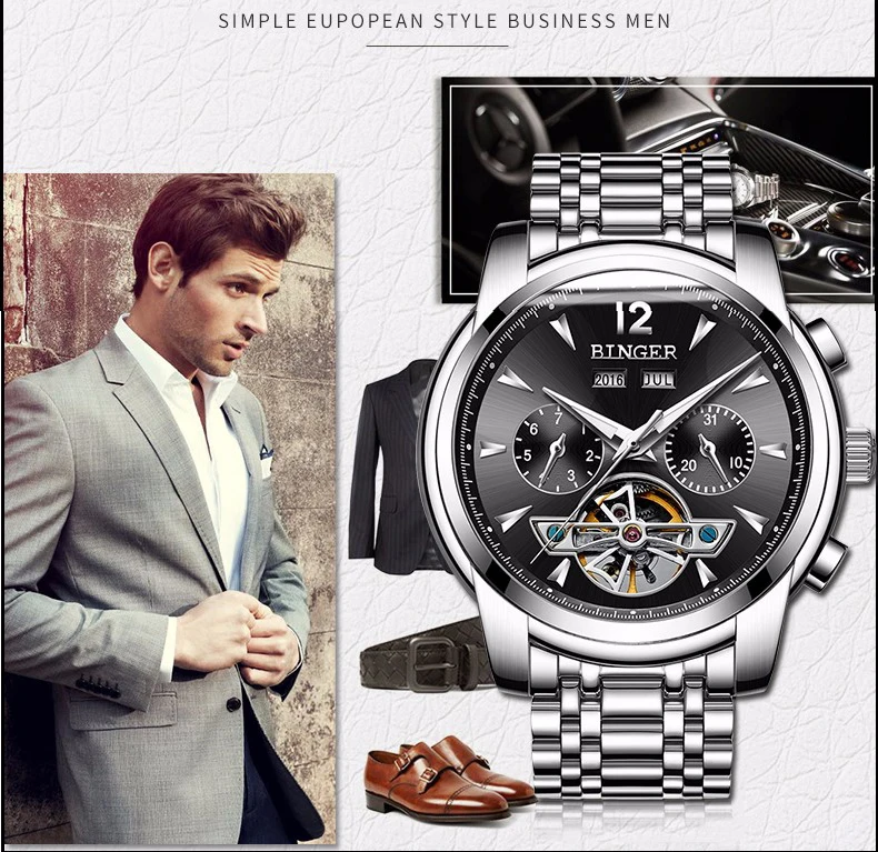 FNGEEN Роскошные мужские часы механические водонепроницаемые автоматические Авто