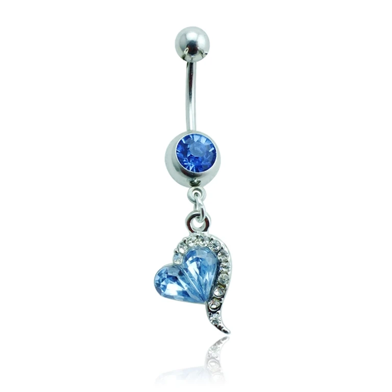 Очаровательное ювелирное изделие для пирсинга кубический циркон инкрустированное сердце в форме крыльев пупка кольцо на пупок озеро синий/розовый/белыйUS $3,00 /Шт.