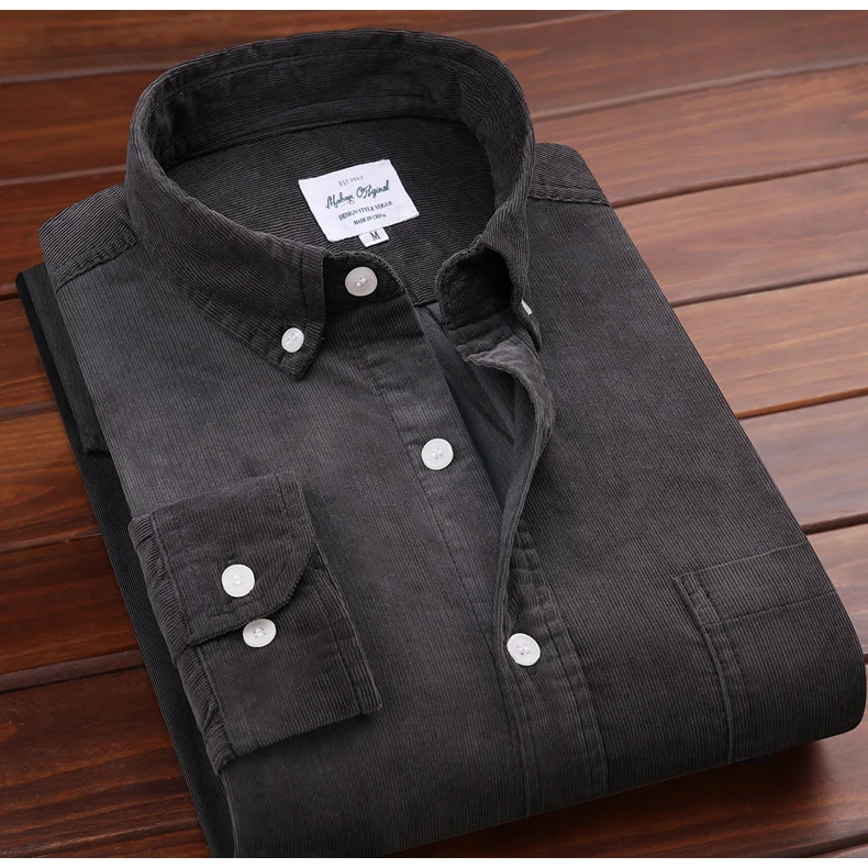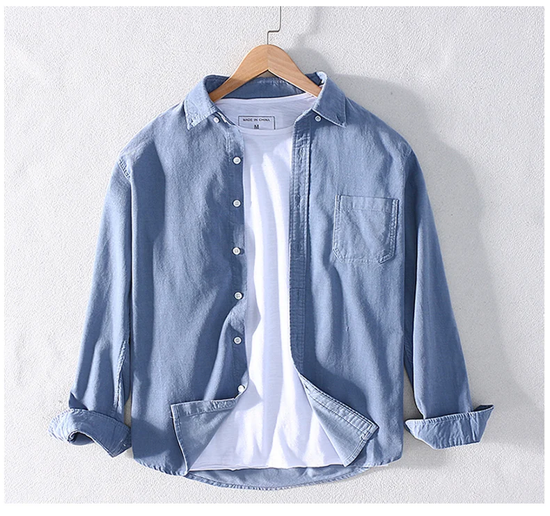 Мужская шелковая рубашка с длинным рукавом синяя однотонная Свободная